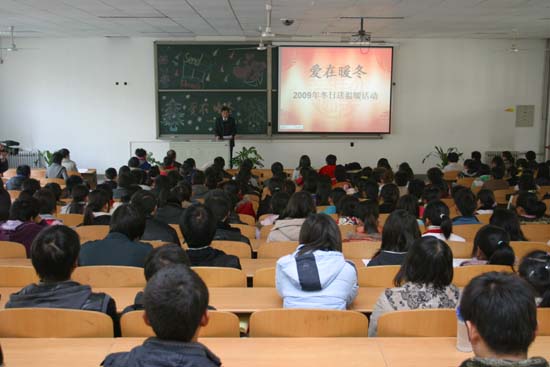 (本网讯)12月21号,学生处举行2009年“爱在暖冬”冬日送温暖活动,332名09级家庭经济特别困难的学生每人领取一套保暖内衣,感受到了学校在充满寒意的冬季送去的一份关怀和温暖。校党委副书记丁养斌出席此次活动并讲话。