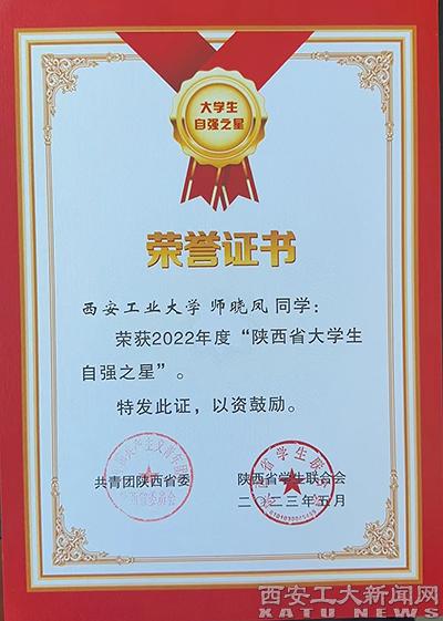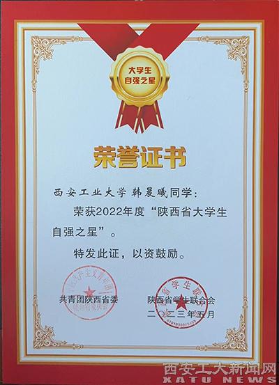 早在今年5月,ac米兰推报的计算机学院软件工程专业2020级韩晨曦同学同时获得了2022年度“陕西省大学生自强之星”荣誉称号。