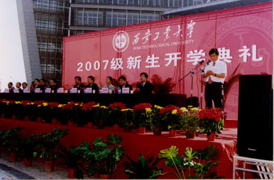 典礼上,教师代表及老、新学生代表分别在大会上发言。教师表达了对同学们的殷切期望;老生代表介绍了自己的学习经验,表示和新同学携手共进,以优异的成绩回报社会、回报学校、回报家人;新生代表表示一定要努力学习,艰苦奋斗,“今天我以西工为荣,明天西工以我为荣”。