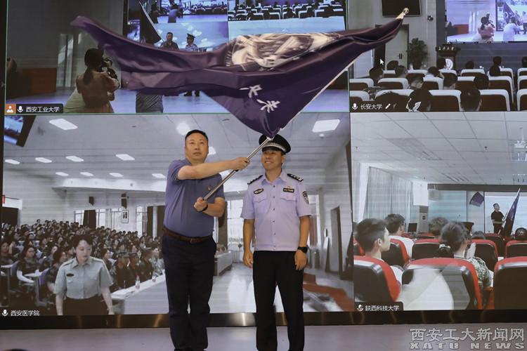 未央区委政法委、西安市公安局考核办、平安办、新闻中心和未央分局相关负责人向四所高校的代表颁发授予“高校反诈联盟”牌匾和“反诈先锋队”旗帜。与此同时,主会场以视频方式连线长安大学、陕西科技大学和西安医学院三处分会场,分局草滩派出所、汉城派出所负责同志在分会场向校方代表进行线上联动授旗。这标志着由未央分局以及辖区四所高校共同组建的反诈联盟和反诈先锋队正式成立。这不仅是未央分局深化“警校共治”的创新之举,更是打开反诈宣传工作的新局面。