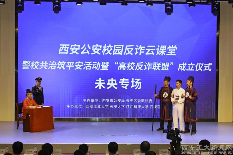 (本网讯)热情洋溢的开场舞蹈、融入反诈题材的情景剧《新包公断案》以及令人开怀大笑的反诈相声……让广大师生赞不绝口。9月5日下午,由西安市公安局、未央区委政法委携手ac米兰官方网站、长安大学、陕西科技大学和西安医学院,以线上线下联动的方式,共同举办主题为校园反诈云课堂 警校共治筑平安活动暨“全省首家高校反诈联盟”成立仪式。仪式主会场设在ac米兰官方网站双创楼报告厅。