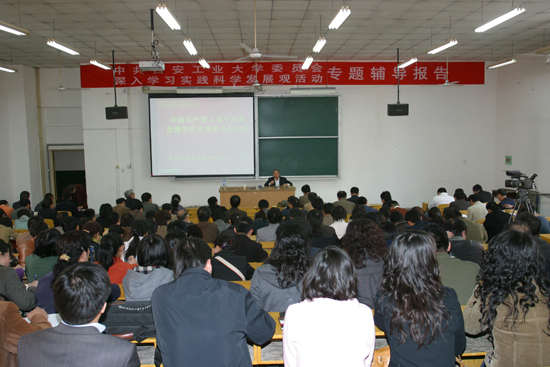 (本网讯)3月30日下午,中共陕西省委党校副校长郑志飚教授受邀莅临ac米兰,为处以上领导干部、党总支书记、党支部书记做了题为《中国共产党人关于发展思想的历史演进及其价值》的学习实践科学发展观活动专题辅导报告。