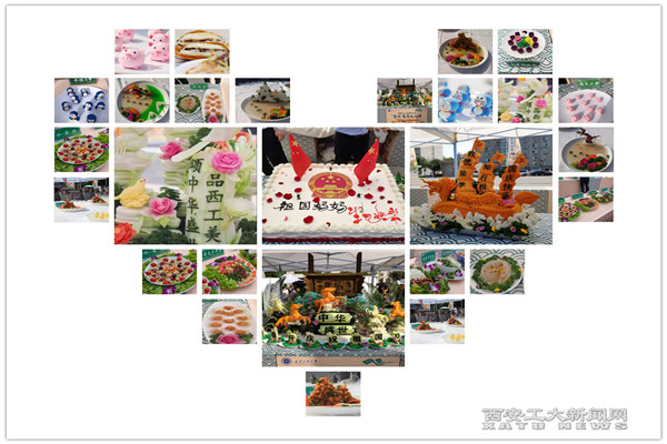 《长安八景》《西安古城墙》《鸟语花香》《一帆风顺》《中华盛世》等具有国庆色彩的食雕作品在尽展厨师刀工之余,表达出了西安工大人对祖国深深的祝福;《贪吃小蛇》《哆啦A梦》《百花争艳》《紫薯玫瑰包》表现了中华面食的别样魅力;各种小吃、面点、蒸菜则让师生们感受到餐饮文化的博大精深。