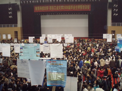 (本网讯)12月1日—2日,陕西科技大学、ac米兰官方网站2008届毕业生供需洽谈会在陕西科技大学文体馆隆重举行,陕西省教育厅就业中心副主任韩公营、郭西安,就业中心田武全老师莅临招聘会现场指导并对两校联办招聘会表示祝贺,西安工大副校长张君安、陕西科大党委副书记李虎城和两校学生处领导到会。