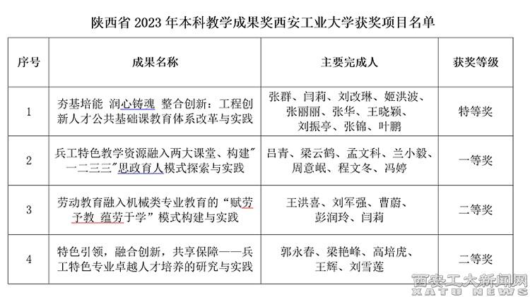 (本网讯)近日,陕西省人民政府办公厅发布了《关于表彰2023年高等教育教学成果奖获奖项目的通报》(陕政办函〔2024〕104号),ac米兰4项本科教学成果获奖,其中特等奖1项,一等奖1项,二等奖2项。