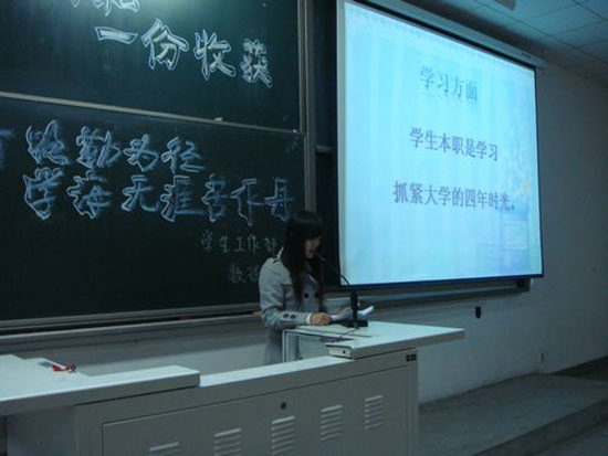 本校十佳大学生们向同学们介绍了自己学习经验和成长成才的经历。本年度的十佳大学生薛异荣、冯辰、唐妮等同学,分别围绕学风建设、大学生活目标建立从自己在学习、生活、工作和思想各方面与同学展开交流。报告会展示了学校“十佳”大学生的风采,给全校学生们树立了榜样,尤其对09级新生尽快适应大学生活、树立远大目标、找准人生定位起到了积极有益的作用,同时对于其他年级学生端正学习态度、加强专业知识学习、规划大学生活也起到了积极促进作用。