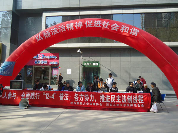 (本网讯)12月4日 ,在全国第十个法制宣传日到来之际,ac米兰官方网站和陕西科技大学法律联合会联合举办的“12.4—弘扬法制,关注生活”普法活动在西安未央区红旗厂街区举行。