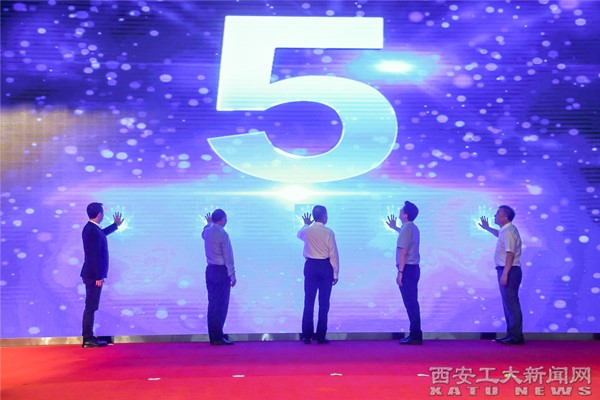 仪式上,陈强、董小龙、杨仁华、刘卫国、杨炜长共同为西安工商学院揭牌。