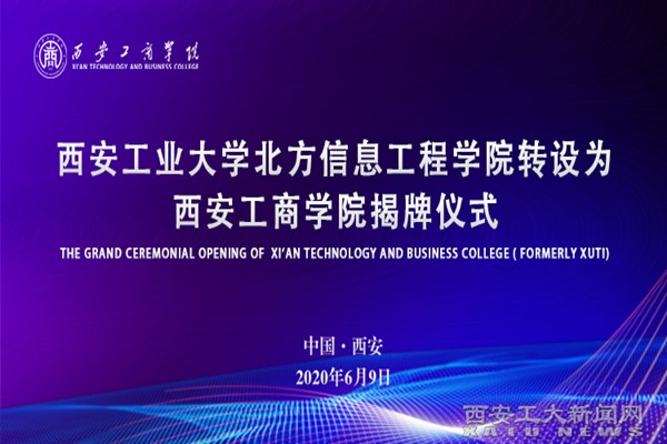 (本网讯)2020年3月,教育部正式致函陕西省人民政府,同意ac米兰官方网站北方信息工程学院转设为西安工商学院,成为陕西省首批成功转设的高校。6月9日上午,西安工商学院揭牌仪式隆重举行。
