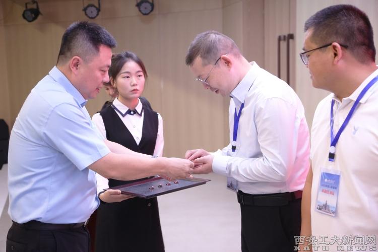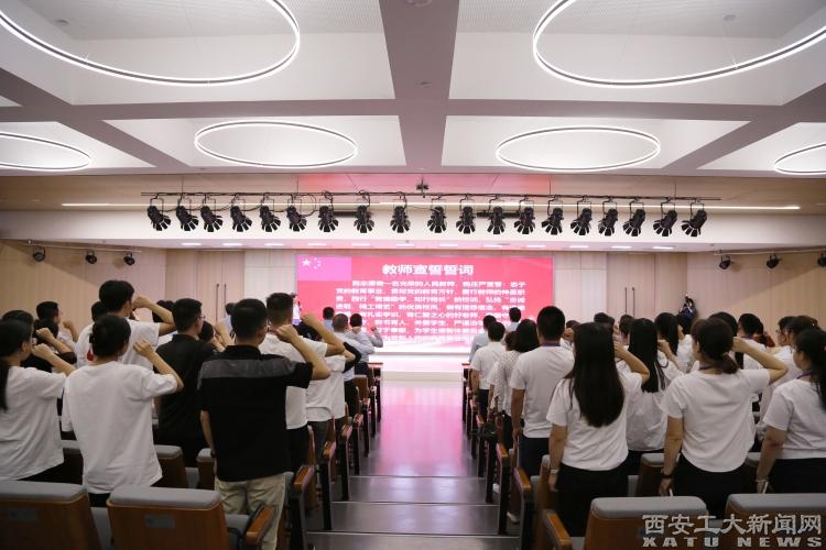 开班仪式上,全体参会教师在师德标兵王洪喜教授的带领下,进行庄严宣誓。掷地有声的誓词,紧握高举的右拳,是每一位新教师的前进方向,更是对教育事业的庄严承诺,随后,与会领导为新入职教师代表颁发佩戴校徽。