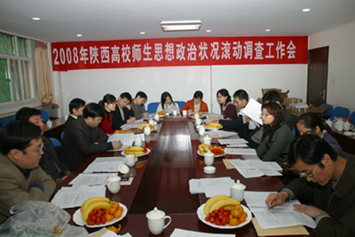 (本网讯)3月12日上午,省教育厅2008年高等学校师生思想政治状况滚动调查工作会在ac米兰官方网站召开。省委教育工委宣教处副处长张玉明、西安交通大学、长安大学、西北工业大学等9所高校的学工部、宣传部领导参加了会议。