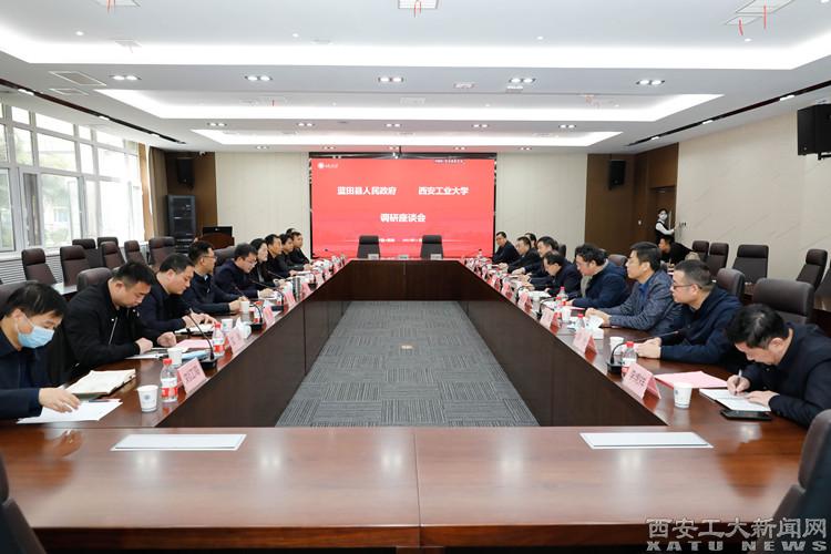 (本网讯)11月12日,蓝田县县长徐毅,副县长王晶、何勇一行来校调研。校长赵祥模,党委副书记、纪委书记、监察专员王发合,副校长陈建出席座谈会,双方就校地合作事宜进行交流。座谈会由王发合主持。