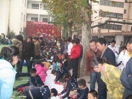 下午,学生风采展示分3个版块在附小操场进行,分别是:学生才艺表演、一至四年级百米画卷“我心中的绿色校园”、学生二课堂展示。家长和孩子们一起观看了教师书画作品,欣赏了学生作业展板和学生书画作品展。在孩子的感染下,在欢快活泼的皮筋舞音乐中,家长们也情不自禁地与孩子们一起舞动起来,仿佛回到快乐的童年时代,许多家长用相机记录下了这欢快动人的一幕。