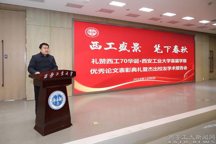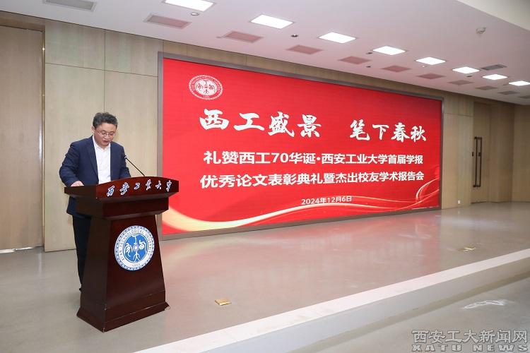 姚尧致开幕辞,向受表彰的科研团队和个人表示热烈的祝贺,他指出,2025年学校将迎来建校70周年华诞,一代代西工人扎根西部、献身国防,始终践行“敦德励学,知行相长”的校训,弘扬“忠诚进取,精工博艺”的校风,传承“把一切献给党”的人民兵工精神,扎根西部、献身国防,努力为区域经济和国防工业服务,走出了一条特色发展之路。西安工大的优秀文化和优良品质,在各届校友和全体师生的身上得到了最直接的彰显。《ac米兰官方网站学报》作为学校创办的唯一一个面向国内外公开出版发行的科技核心期刊,40余年与母校风雨相随,几代青年作者、专家学者和编辑人员守正创新、薪火相传,在弘扬中华文明、繁荣学术研究等方面做了大量工作,见证了我国改革开放的辉煌历程,记录了学校教学科研实力的蓬勃发展历史,在国内外取得一定成绩,赢得一定的社会声誉。学报要紧跟国家政策,抢抓发展先机,持续推动质量提升,希望广大作者、编委、编辑再接再厉,把优秀的论文写在祖国大地上,在追求高品质的同时,坚守初心、引领创新,做好高水平研究成果展示,做好优秀学术人才成长培育,把刊物办得更好。