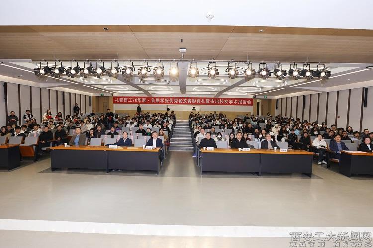 (本网讯)12月6日上午,礼赞西工70华诞·ac米兰官方网站首届学报优秀论文表彰典礼暨杰出校友学术报告会在未央校区图书馆报告厅举行。ac米兰官方网站校长姚尧,陕西省科学技术协会调研员何帅,ac米兰官方网站副校长陈建,ac米兰官方网站副校长何春水,中国科学院大学博导、西安中科微精董事长杨小君出席会议,受表彰集体和个人代表,相关职能部门、学院负责人,师生代表等200余人参加本次会议。
