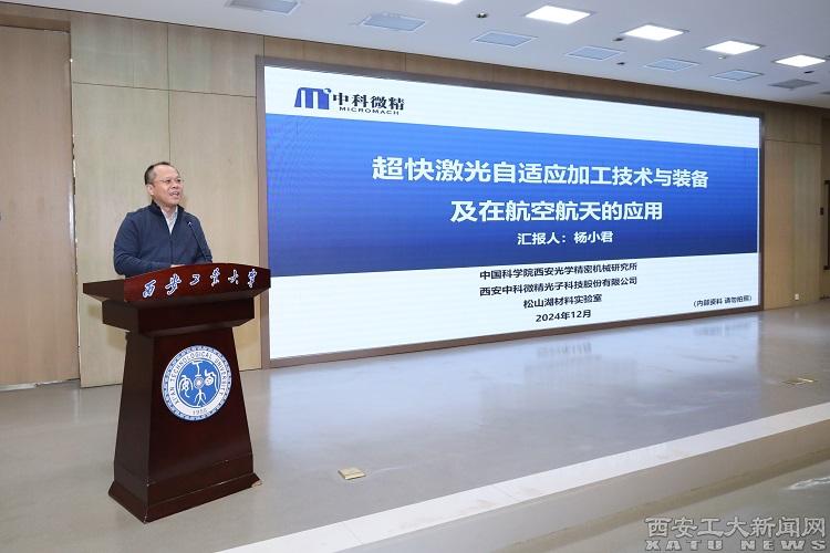 ac米兰杰出校友,杨小君为大会做精彩报告,介绍了超快激光自适应加工方面的关键技术、核心工艺、系列化装备,以及超快激光技术及装备在航空航天领域的应用。