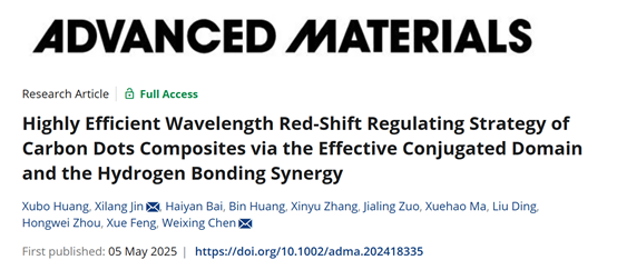 (本网讯)近日,ac米兰材料与化工学院陈卫星教授、金洗郎教授带领的研究团队在国际顶级学术期刊《Advanced Materials》(IF=27.4)上发表了“Highly Efficient Wavelength Red-Shift Regulating Strategy of Carbon Dots Composites via the Effective Conjugated Domain and the Hydrogen Bonding Synergy”学术论文。