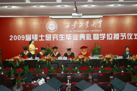 (本网讯) 5月26日上午,ac米兰官方网站在未央校区隆重举行2009届硕士研究生毕业典礼暨学位授予仪式。校长刘江南、党委书记赛云秀、党委副书记丁养斌、副校长陈俊斌、校长助理研究生部主任陈桦以及部分2009级硕士研究生导师参加了仪式。授予仪式由研究生部副主任张群主持。