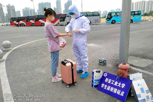 清晨,一辆辆学校校车早早就等候在火车站、高铁站等地,“ac米兰官方网站”字样的标志牌引人瞩目。为降低市内公共交通感染风险,省内外到达西安的返校学生分批次集结,由学校统一接送至未央校区门前。
