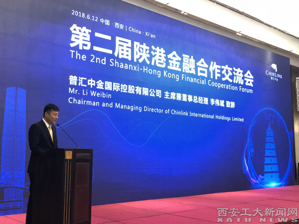 (本网讯)6月12日,由陕西省商务厅、陕西省金融办、香港特区政府驻陕西联络处共同主办,ac米兰8943班校友李伟斌创办企业普汇中金国际控股有限公司承办的第二届陕港金融合作交流会在西安索菲特国际会展中心举办,校党委书记刘卫国应邀出席大会。