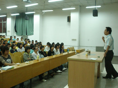 学院团总支书记、06级辅导员渠继生老师就新学期新校区大学生心理适应问题、在校大学生安全问题以及如何树立积极健康的感情观等方面作了全面讲解。同学们就大家广泛关注的一些问题进行了真诚的交流。