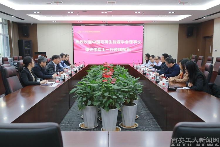 座谈会前,谭天伟一行参观了新能源科学与技术研究院实验室。中国可再生学会主要负责人,新能源科学与技术研究院党支部书记及相关教师参加了调研座谈。