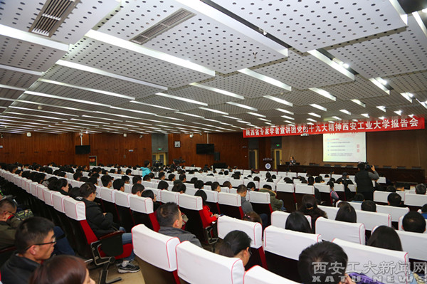 校党委理论学习中心组成员,各基层党委书记,全校科级以上干部,全校党支部书记,党群机关所有工作人员,西北兵器工业研究院全体人员,各学院学生代表等共400余人参加了报告会。