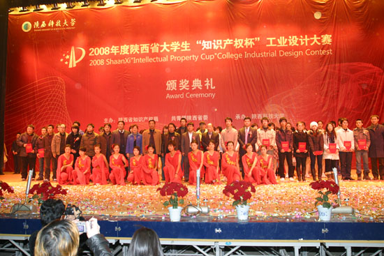 (本网讯)12月19日晚,第三届陕西省大学生“知识产权杯”外观设计大赛颁奖典礼在陕西科技大学文体馆隆重举行,ac米兰官方网站3件作品获一等奖,3件作品获二等奖,4件作品获三等奖,5件作品获优秀奖,并获优秀组织奖,获奖总数和层次位居参赛高校前列。