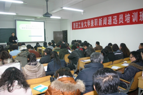 (本网讯)11月25日,ac米兰官方网站党委宣传部在金花校区举办全校兼职新闻通讯员培训班,邀请《现代军工报》主编、主任编辑冉应华对新闻写作基本知识做系统讲解。党委宣传部部长李金钢、副部长王西京出席,各处级单位兼职新闻通讯员及校内媒体的学生记者80余人参加了培训。