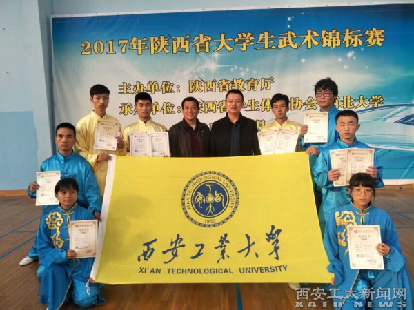 (本网讯)11月11日至12日,由副校长陈桦任领队,武术教师李明任教练,电信学院、机电学院、人文学院、理学院的8名学生组成西安工大武术队参加了“2017年陕西省大学生武术锦标赛”的甲组比赛。