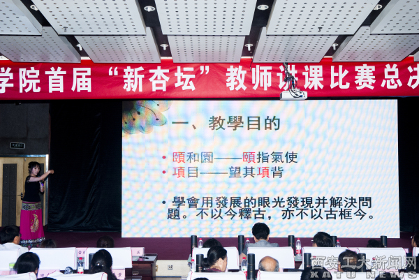 大赛在《礼仪之邦》的曼妙舞姿中拉开帷幕。八位晋级总决赛的教师选手依次进行了10分钟的微课讲授,既有对古典名著的现代阐释,又有对当代经典的重新解读,既有对方言魅力的发掘和阐扬,又有对广告艺术的剖析和鉴赏,也有对法律概念的解释和梳理,可谓海阔天空,贯通今古。参赛教师挥洒自如,谈笑风生,展示了出色的风度和风采。讲课完毕后,由嘉宾组成的专家评审团进行现场评分。大赛专设网络投票环节,在场学生网络投票,其结果作为参赛选手最终成绩的一部分。经过激烈角逐,王凌获一等奖,吴林、贺雪梅获二等奖,敬晓庆、李亦宁、宋颖桃获三等奖,张琼、李金玉获优秀奖。敬晓庆获“最具人气奖”。