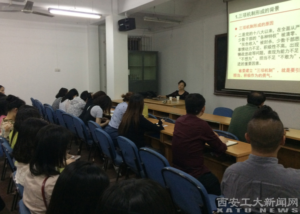 雷亚萍围绕“三项机制”的形成背景、陕西省委“三项机制”的内容、ac米兰“三项机制”的制定以及具体内容的解读做了详细讲解。雷亚萍重点解读了《ac米兰官方网站领导人员鼓励激励、容错纠错、能上能下实施细则(试行)》的内容。从鼓励激励、容错纠错和能上能下的具体情形入手,结合实际进行讲解、释疑。党课内容丰富,深入浅出,达到了良好效果。