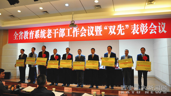 (本网讯)近日,陕西省教育厅召开全省教育系统老干部工作先进集体和先进工作者表彰大会,ac米兰离退处荣获“全省教育系统老干部工作先进集体 ”称号。教育厅副巡视员李鸣宣布了表彰决定,到会领导为获奖单位和个人颁发了奖牌和证书。