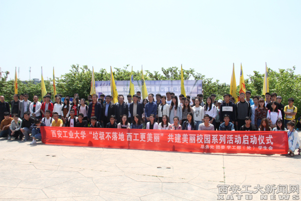 (本网讯)为响应西安市委提出的“烟头不落地 西安更美丽”,并结合今年爱国卫生月主题“历史与展望—为了人民健康的65年”。4月28日,ac米兰团委、总务处、学工部(处)以及学生会共同举办了“垃圾不落地 西工更美丽”共建美丽校园系列活动启动仪式,校党委副书记吴介军出席。