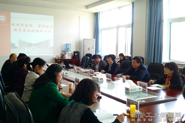 (本网讯)4月13日,科技部政策法规司副巡视员唐玉立、陕西省科技厅总工程师杨柳、政策法规处处长王军、社会发展处副处长富雪玲一行莅临ac米兰进行调研。副校长雷亚萍出席调研座谈会。