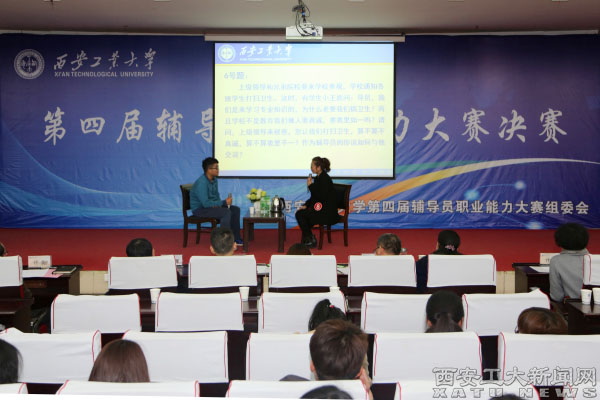 通过前期紧张的基础知识笔试,共有10名辅导员挺进了决赛。决赛共分为两个阶段四个环节。上午,采用视频展示的方式进行了主题班会环节,下午举行主题演讲、案例分析、谈心谈话三个环节。比赛现场,辅导员老师们用自己的方式阐述了对学生工作的认识、感悟,也用巧妙、轻松的语言解答了学生学习生活中的各类问题。尤其是谈心谈话环节,在参演客串学生精彩地配合下,辅导员老师们充分展示了思想政治工作的能力与水平。人文学院党委书记雷晓青、机电工程学院党委书记赵玉厚老师和学生工作部部长李建安老师分别就选手们三个环节的现场表现作了精彩的点评,为辅导员们参加比赛与实际工作进行了指导。