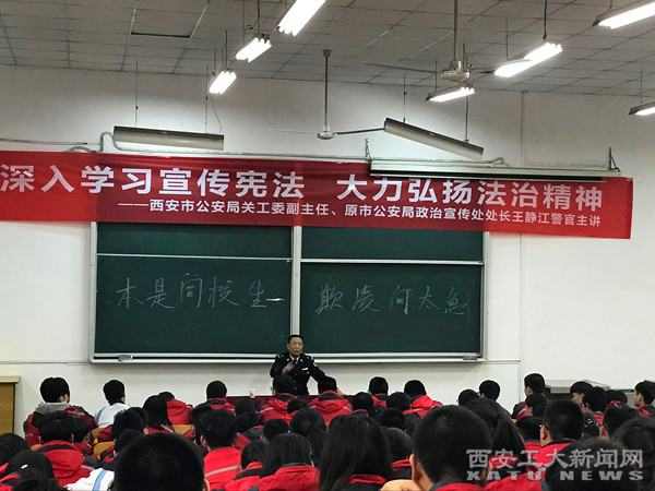 (本网讯)12月1日,在法制教育宣传日来临之际,ac米兰附中邀请西安市关工委副主任、市公安局政治部宣传处原处长王静江警官,为附中200余名师生进行了法制教育报告。