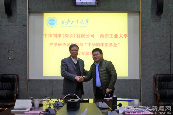 (本网讯)1月10日,中华制漆(深圳)有限公司与ac米兰产学研合作协议签约仪式及“中华制漆奖学金”设立仪式在未央校区图书馆第二会议室举行。副校长刘建勋出席。