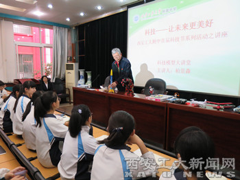 (本网讯)近日,ac米兰附中特邀陕西省少工委“红领巾大讲堂”成员、西安市劳动模范、西安市老科协理事、雁塔区老科协副会长柏景森老师为附中师生作了题为《科技模型大讲堂》的专题讲座,为附中首届科技节助阵。