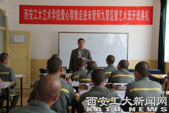 (本网讯)4月1日,艺术与传媒学院爱心帮教走进陕西省未成年犯管教所九管区暨艺术班开班典礼在未管所九管区会议室举行,未管所副所长,艺术学院工业设计系、美术学系相关教师及学生志愿者参加活动。