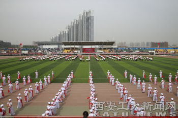 开幕式上,大型团体操、“绳彩飞扬”、“旗操”、“腰鼓”等节目引起现场观众雷鸣般的掌声。由来自7个学院的600名大学生代表表演了“第九套广播体操”,用整齐划一的动作,展现了朝气蓬勃的精神面貌。由附小的小朋友们带来的“绳彩飞扬”更是引来现场一阵赞叹。鼓槌挥舞,彩绸翻飞,鼓声如雷的“安塞腰鼓”震撼大地,气势逼人。