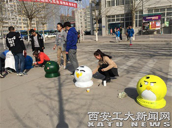 (本网讯)时值初春三月,为迎合“新学期,新气象”的良好风尚,ac米兰电子信息工程学院以弘扬雷锋精神和美化校园为契机,开展了为期三天的以“雷锋三月,炫彩校园”为主题的校园涂鸦活动。