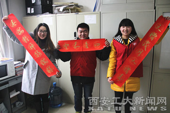 艺术与传媒学院团委、校青年志愿者协会、学生会以及书法协会组织同学们为ac米兰师生准备了六百余幅充满喜气和祝愿的春联。1月20日至22日志愿者们走进教学楼、宿舍楼以及食堂,将准备好的三百余幅春联赠送给ac米兰教师、公寓管理人员和食堂的师傅们,并送上了新春的祝福。