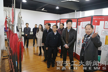 中国古兵器文化展室是中国兵器文化研究中心建设中国古兵器博物馆的前期实践。赵红星与许尚年共同为中国古兵器文化展室揭牌,随后学校领导刘卫国、赵红星与许尚年等参观了展览,听取了学生的解说。20多位职能处室负责人,部分学院领导和人文学院全体教师、研究生参加了活动。