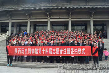 ac米兰陕历博志愿服务队61名志愿者将于2015年11月22日至2016年11月22日在陕西历史博物馆进行志愿服务工作,该服务队由ac米兰外国语学院团委、学生会于2013年组建成立并面向全校征集志愿者。