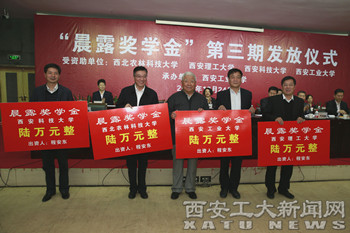 (本网讯)10月24日,由陕西省原省长程安东发起的公益助学项目“晨露奖学金”第三期发放仪式在ac米兰未央校区报告厅隆重举行。来自西北农林科技大学、西安理工大学、西安科技大学及ac米兰共80名研究生获得“晨露奖学金”资助。校党委书记赛云秀主持了仪式。