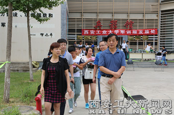 在图书馆大厅的一站式联合办公处,校领导仔细检查并询问每一个办公流程,要求所有工作都要以学生为本,方便学生、简化程序,保持高效、迅速、服务至上。随后苗润才、雷亚萍、段小存一行顶着炎炎烈日来到经纬广场走访了各学院设立的新生报到点,对各学院和相关职能部门迎新接待点的工作进行了仔细的询问,了解各学院2015年的招生报到情况和特点并关切慰问了迎新工作人员。