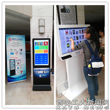 (本网讯)当前,使用iPhone、Android等智能移动设备的读者人数不断增加,为适应读者对移动阅读的新需求,鼓励师生多读书、读好书。近日,ac米兰未央校区图书馆二楼大厅引进了两台电子书借阅机试用,为广大读者搭建起一个更加便捷的数字阅读平台。