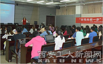 “女性向前一步”是陕西妇女理论婚姻家庭研究会主持的联合国性别文化研究总署项目,重点研究女大学生成才模式,倡导从国家政策、社会文化、高校教育等各个层面齐心协力,共同优化女大学生成才成长环境。白军芳教授是该项目讲师团成员。