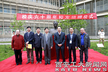 赛云秀和贾宏雄共同为吴运铎铜像揭幕,最后,参加活动的各位领导与贾宏雄校友在吴运铎铜像前合影留念。